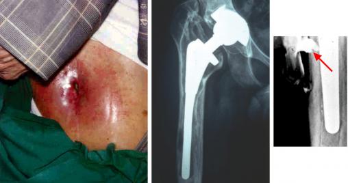 Infection sur prothèse de hanche descellée infectée et fistulisation cutanée chronique