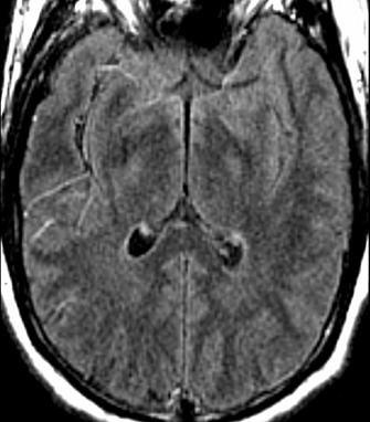 IRM cérébrale, séquence FLAIR : aspect normal à H2