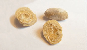 Environ 8 % des calculs sont des composés d'acide urique. Ils sont radio-transparents, favorisés par l'acidité des urines avec un pH 6 et l'hyperuricémie avec hyperuricosurie. Ils sont volontiers liés au syndrome métabolique, au diabète, à l'excès d'apport en purines, parfois à un syndrome prolifératif. Leur fréquence augmente avec l'âge.