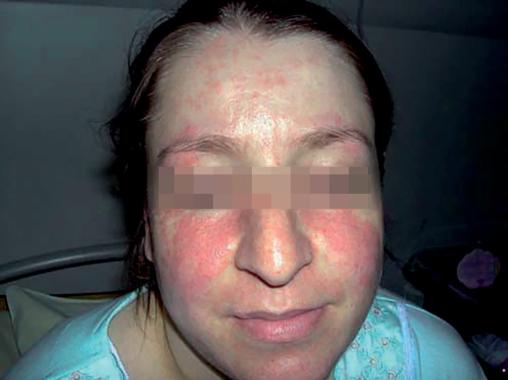 Lupus aigu caractérisé par le vespertilio de topographie symétrique ou en ailes de papillon, avec des lésions érythémateuses ou maculopapuleuses, non prurigineuses.