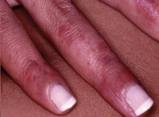 Lupus-engelure, simulant cliniquement des engelures, mais survenant en dehors de la saison froide.