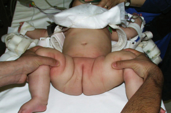 Il faut noter le raccourcissement de la cuisse et l’asymétrie des plis.