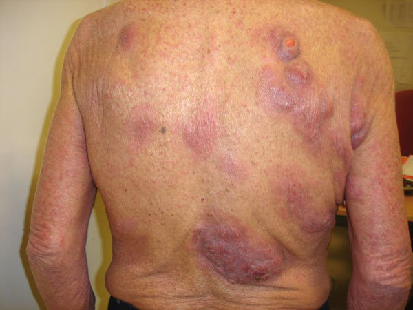 Mycosis fongoïde tumoral. Le mycosis fongoïde est le plus fréquent des lymphomes T cutanés (43 % de l’ensemble des lymphomes cutanés).