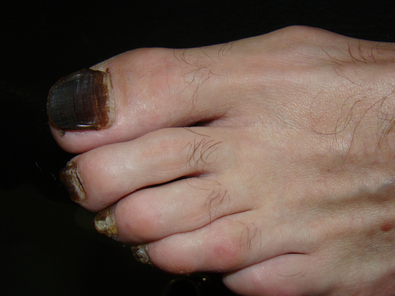 Ongles noirs apparus suite à un bain de pied au permanganate de potassium