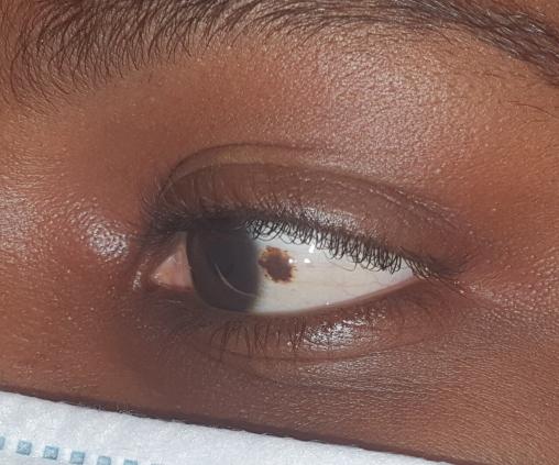Lésion pigmentée au niveau de la conjonctive de son œil gauche