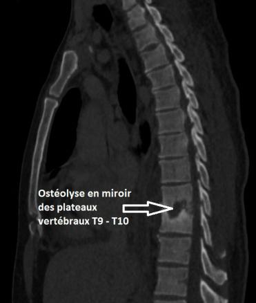 Ostéolyse vertébrale évocatrice de spondylodiscite évolutive