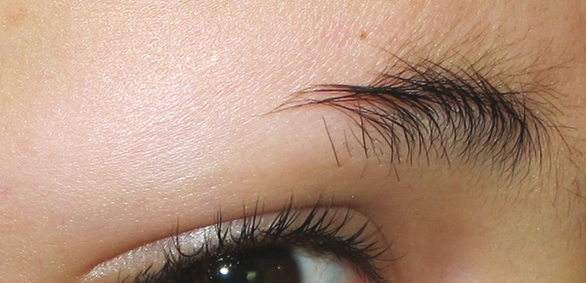 ©Pierre Assouly - La Revue du Praticien Il s'agit d'une pelade diffuse qui peut atteindre comme ici les sourcils, mais aussi les cils, la barbe ou les zones corporelles...