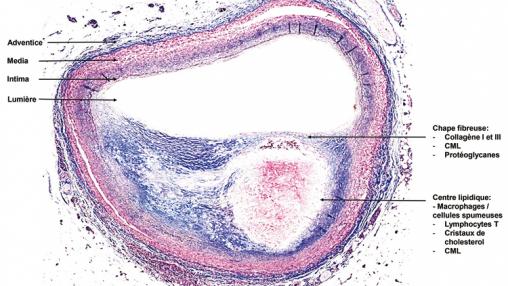Coupe transversale d'une artère coronaire.CML : cellules musculaires lisses.