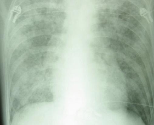 Radiographie de thorax de face. Pneumocystose.