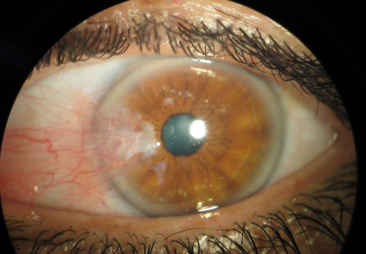 Il s’agit d’un remplacement tissulaire mais pas d’une métaplasie, ni d’une dysplasie. Il n’y a plus de barrière fonctionnelle à la progression de l’épithélium conjonctival en cornée. Le front grisâtre de progression (Ilots de Fuchs) témoigne d’une progression active.