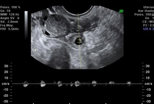 Sac gestationnel extra-utérin avec activité cardiaque.