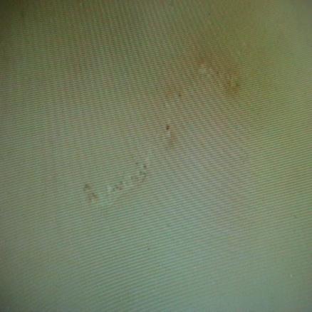 Coll. Dr A. Bertolotti, La Revue du Praticien Présence d’un sarcopte dans un sillon scabieux avec visibilité d’œufs et d’excréments. La tête du sarcopte a l’aspect d’un deltaplane.