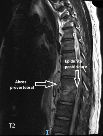 Spondylodiscite, abcès prévertébral antérieur, épidurite postérieure