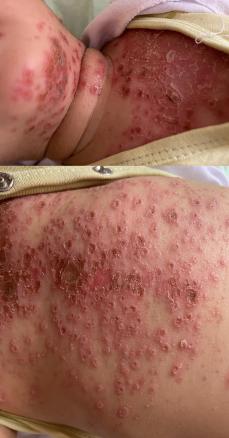 Appelé aussi pustulose varioliforme de Kaposi-Juliusberg. Elle est due à la surinfection par l’herpès simplex virus d’une dermatite atopique en poussée. Les vésicules à centre ombiliqué, confluentes, se troublent et évoluent vers la nécrose.