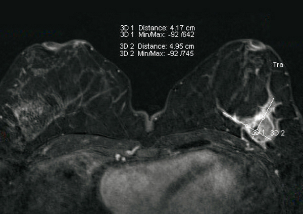 © Sylvie Lemery - La Revue du Praticien IRM, masse unique BIRADS 5. Histologie : carcinome canalaire type triple négatif.