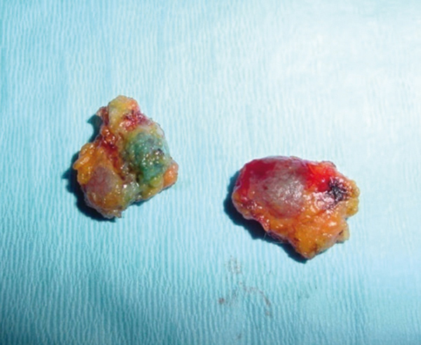© Yann Delpech - La Revue du Praticien L’un est bleu et chaud (marquage combiné par le traceur colorimétrique et radioactif), l’autre est chaud seul (marquage uniquement par le traceur radioactif).
