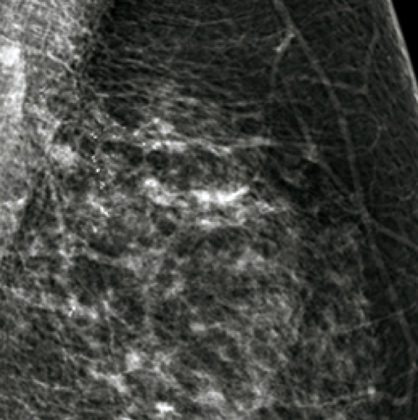 © Sylvie Lemery - La Revue du Praticien Microcalcifications irrégulières, distribution triangulaire. BIRADS 5. Histo CCI + CCIS haut grade.