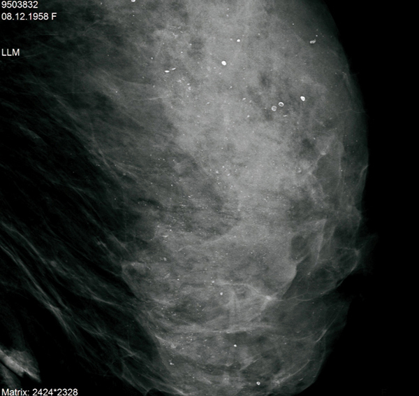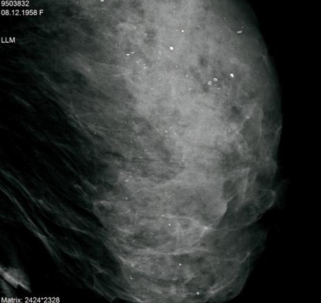 © Sylvie Lemery - La Revue du Praticien Agrandi du profil gauche. Microcalcifications diffuses et bilaterales, non evolutives. BIRADS 2.