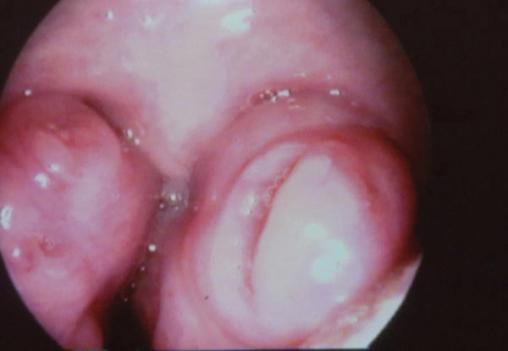 Les amygdales sont hypertrophiées et obstructives, en dehors de toute signe d’angine. Cette hypertrophie peut provoquer une obstruction des voies aériennes.
