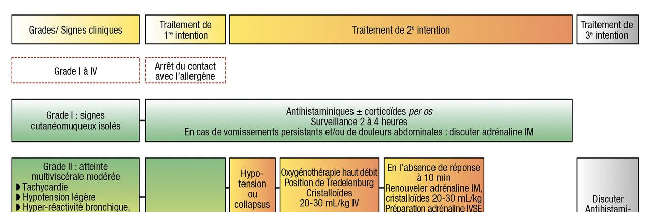 ACR : arrêt cardiorespiratoire ; IM : intramusculaire ; IV : intraveineux ; IVSE : intraveineux en seringue électrique ; VVP : voie veineuse périphérique ; mg : milligramme. Lire aussi Article Web Réaction allergique après vaccin Covid : la 2e dose est possible Article Urgences en dermatologie pédiatrique Article Œdème de Quincke et anaphylaxie Exercice Dossier progressif n°27