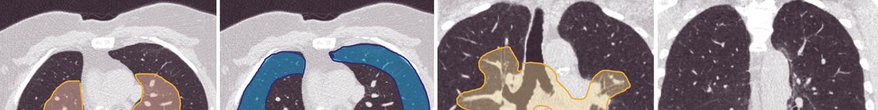 A : zone de distribution centrale, B : zone de distribution périphérique, C. zone de distribution péribronchovasculaire, D : zone de distribution sous-pleurale basale. Lire aussi Article L’apport méconnu des scanners dans l’évaluation de la dénutrition Article Imagerie dans les cancers de l’ovaire Article Web Gonalgie : quand prescrire une imagerie et laquelle ? Article Web La mammographie pour détecter les patientes à risque cardiovasculaire ? Article Douleur thoracique stable : le coroscanner d’abord Article Pneumopathie interstitielle diffuse