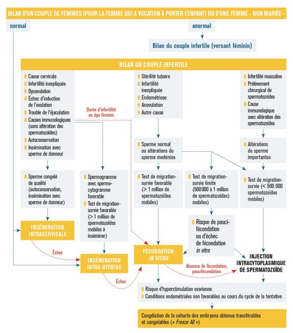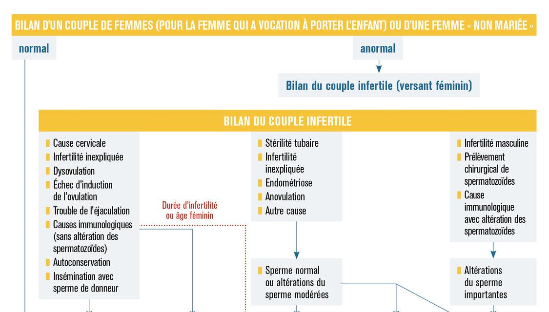 Arbre décisionnel pour la prise en charge en assistance médicale à la procréation d’un couple ou d'une femme « non mariée » infertile Lire aussi Article Premier bilan d’infertilité Article Web Fertilité et contraception masculines : la reproduction n’est pas que l’affaire des femmes ! 🎤 Article Web Le téléphone portable nuit à la qualité du sperme Article Transplantation utérine : un traitement pour l’infertilité absolue d’origine utérine Article Prise en charge en assistance médicale à la procréation Article Assistance médicale à la procréation : principaux aspects biologiques, médicaux et éthiques