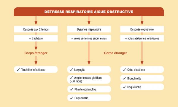 Arbre diagnostique des causes de détresse respiratoire aiguë obstructive chez le nourrisson et l'enfant
