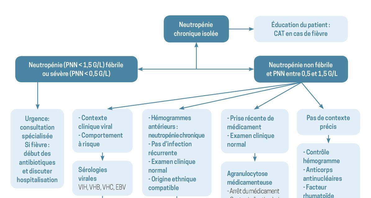 neuropenie Lire aussi Article Web Neutropénie : isolée ? profonde ? aiguë ou chronique ? Article Neutropénie : comment s’orienter ? Article Conduite à tenir en cas de fièvre chez un patient d’oncohématologie Article Neutropénie : quelles causes ?