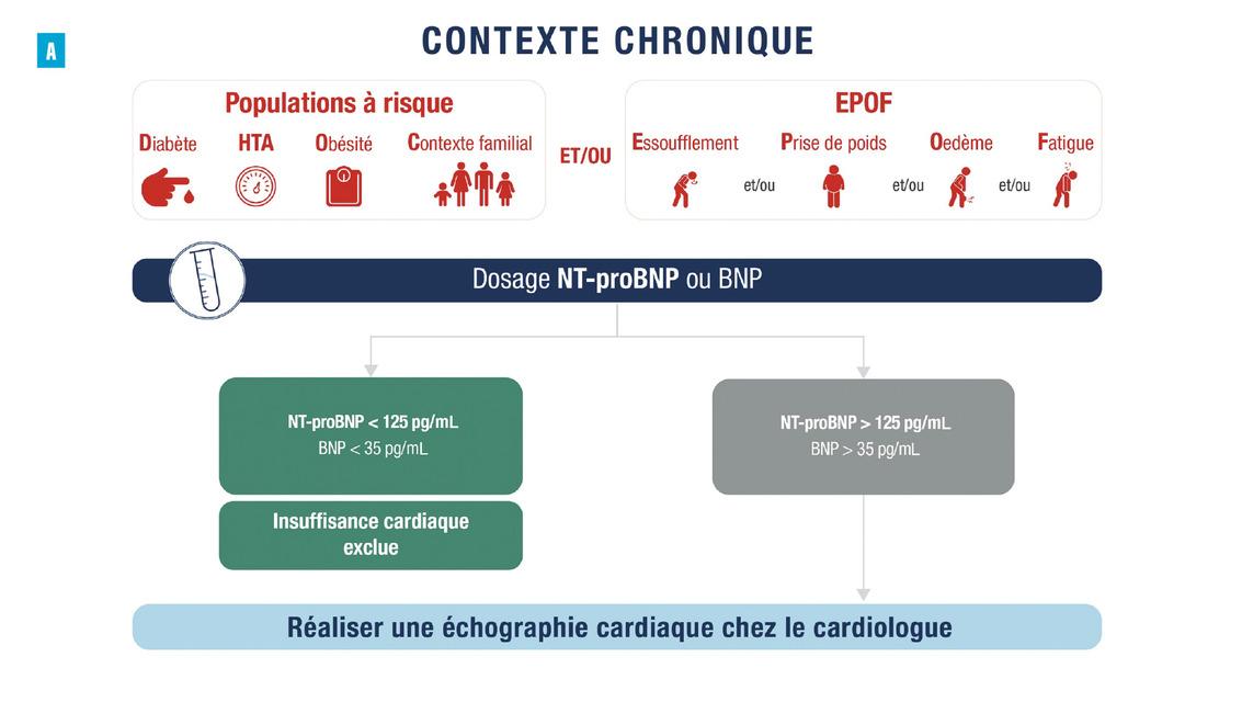 Extrait de : Peptides natriurétiques dans le diagnostic et le suivi de l’insuffisance cardiaque Lire aussi Exercice Cas clinique article - Suivi d’un patient insuffisant cardiaque avec le NT-proBNP Exercice Quiz article - Homme hypertendu dyspnéique Exercice Quiz article - Femme diabétique hypertendue Article Peptides natriurétiques dans le diagnostic et le suivi de l’insuffisance cardiaque Article Web Insuffisance cardiaque : des nouveautés ! Article Web Vivre à la campagne, facteur de risque d’insuffisance cardiaque ?