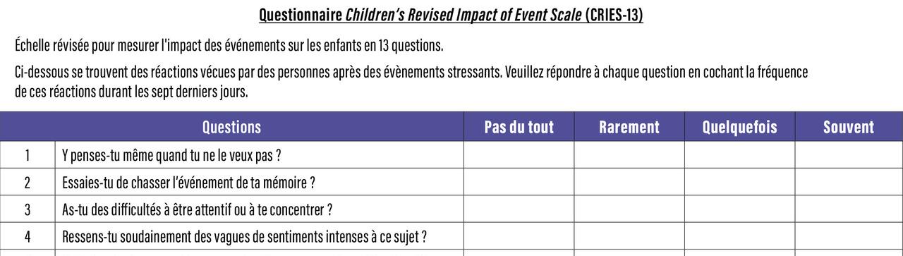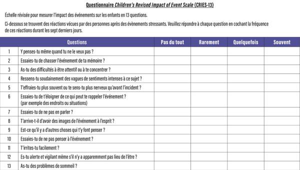 3. Échelle CRIES-13 pour mesurer l’impact des événements sur les enfants en 13 questions