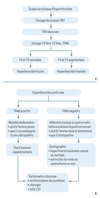 Extrait de : Prise en charge des dysthyroïdies Lire aussi Article Web Dysthyroïdies : éviter examens et traitements inutiles Article Prise en charge des dysthyroïdies Article Web Nodules thyroïdiens : quand et comment explorer ? Article Hyperthyroïdie Article Cas particuliers d’hyperthyroïdie