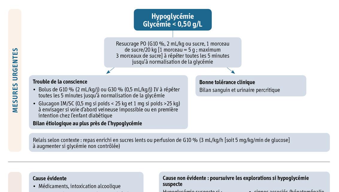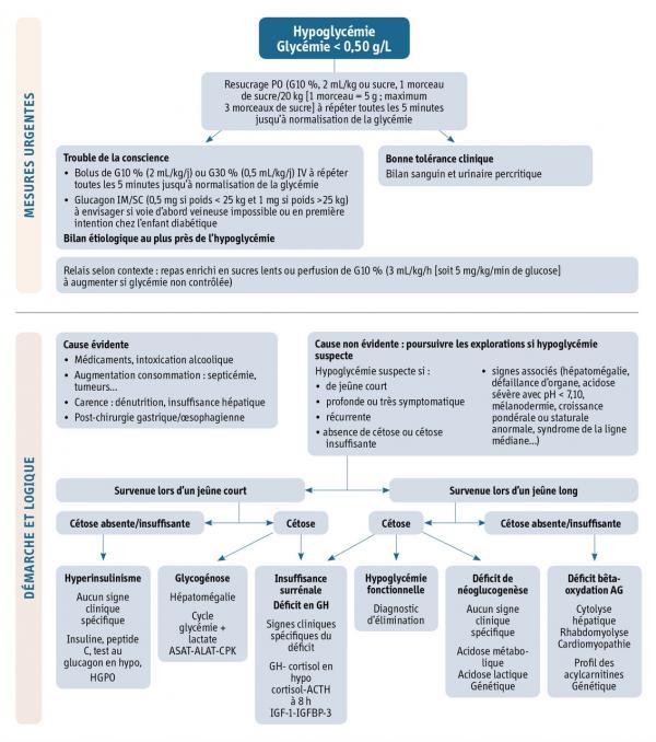 G10 % : solution injectable à base de glucose à 10 % ; G30 % : solution injectable à base de glucose à 30% ; GH : Growth Hormone, hormone de croissance ; IM : intramusculaire ; IV : intraveineuse ; PO : par voie orale ; SC : sous-cutanée Lire aussi Article Hypoglycémies chez l’adulte et l’enfant - Partie 1 / Chez l’adulte Article Hypoglycémie chez l’adulte et l’enfant - Partie I / Enfant Article Hypoglycémie chez l’adulte et l’enfant