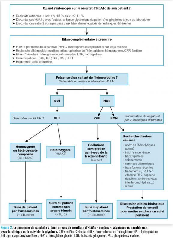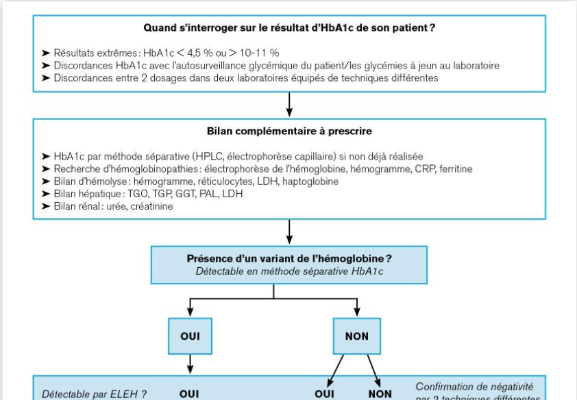 3. Logigramme de conduite à tenir en cas de résultats d’HbA1c « douteux », atypiques ou incohérents avec la clinique et le suivi de la glycémie