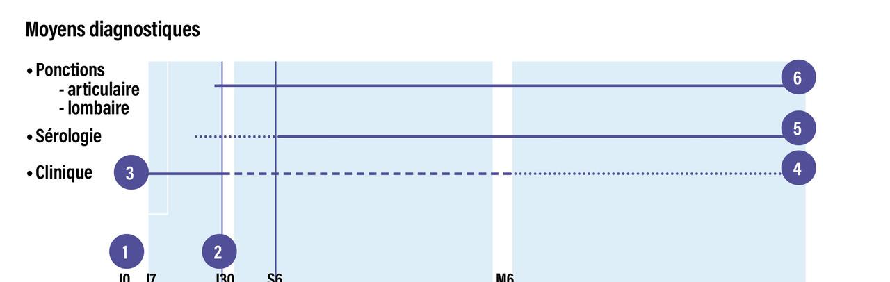 Extrait de : Borréliose de Lyme Lire aussi Article Web Maladie de Lyme : les clés pour éviter l’errance médicale Article Borréliose de Lyme Article Web Suspicion de Lyme : que faire en MG, quand et à qui adresser ? Exercice Une maladie de Lyme peut-elle causer un AVC ischémique ? Article Une cause rare d’accident vasculaire cérébral ischémique : la maladie de Lyme Article Neuroborréliose de Lyme : ne pas traiter plus d’un mois