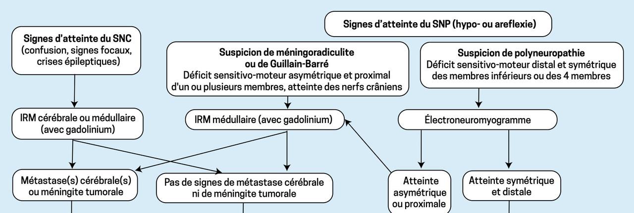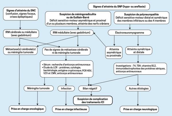 Orientation devant des effets indésirables neurologiques (SNC : système nerveux central ; SNP : périphérique)