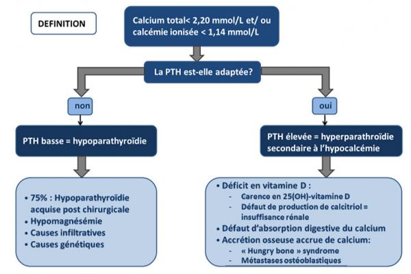 Orientation diagnostique devant une hypocalcémie : raisonnement selon la PTH
