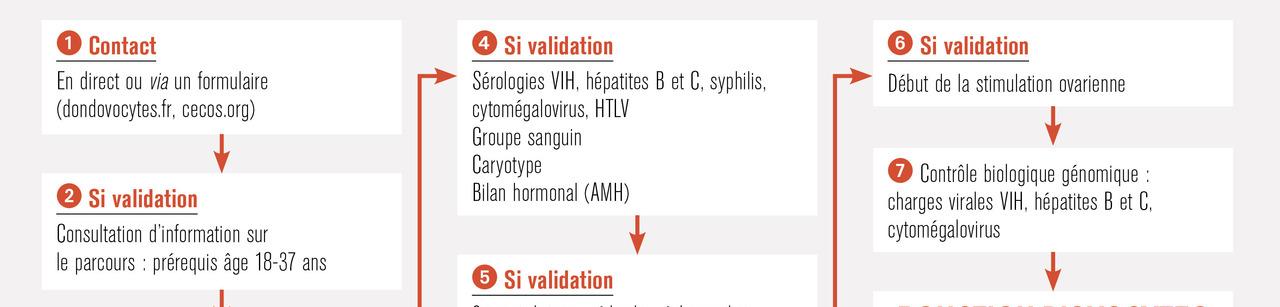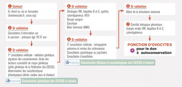 AMH : hormone antimüllérienne ; CECOS : centre d’étude et de conservation des œufs et du sperme humains ; HTLV : virus T-lymphotropique humain ; VIH : virus de l’immunodéficience humaine. Lire aussi Article Conditions actuelles du don de gamètes en France