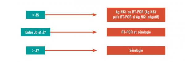 Prescription des tests diagnostiques pour la dengue indépendamment de la zone géographique.