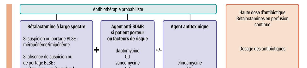 Extrait de : Implications thérapeutiques de la microbiologie des infections cutanées graves Lire aussi Article Web Notre dossier – Infections nécrosantes des tissus mous Dossier Chirurgie en urgence, antibiothérapie probabiliste précoce et traitement des défaillances d'organes Article Prise en charge à la phase aiguë des infections nécrosantes de la peau et des tissus mous Article Diagnostic des infections cutanées graves, épidémiologie et sémiologie clinique Article Implications thérapeutiques de la microbiologie des infections cutanées graves Article Diagnostics différentiels des infections cutanées graves