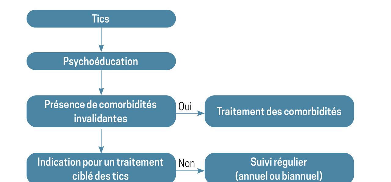Figure. Extrait de : Tics de l’enfant et syndrome de Gilles de la Tourette Lire aussi Article Tics de l’enfant et syndrome de Gilles de la Tourette Article Web Tics et Gilles de la Tourette : quand traiter et comment ? Article Tics, maladie de Gilles de la Tourette : se méfier des caricatures