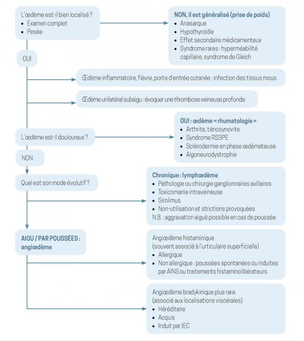 Réflexion diagnostique devant un œdème des mains Extrait de : Examen clinique des mains [partie 1] Lire aussi Article Web Œdème de la face : comment s’orienter ? Article Examen clinique des mains [partie 2] Article Web Lire dans les signes de la main Article Œdème maculaire : quoi de neuf ? Article Popeye, sors de ce corps ! Article Psoriasis palmaire