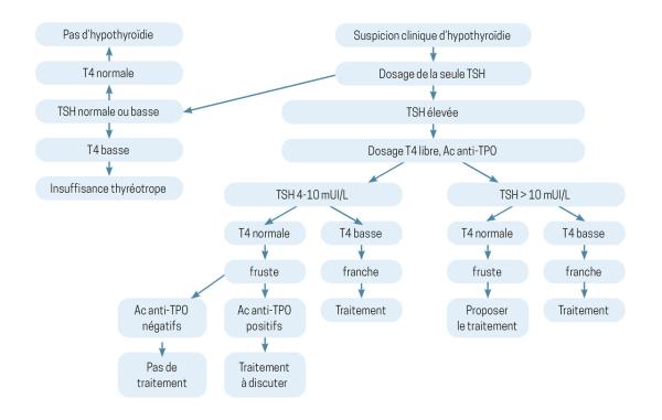 Extrait de : Prise en charge des dysthyroïdies Lire aussi Article Conduite à tenir devant un goitre plongeant Article Web Dysthyroïdies : éviter examens et traitements inutiles Article Prise en charge des dysthyroïdies Article Web Nodules thyroïdiens : quand et comment explorer ? Article Hypothyroïdie Article Hypothyroïdie fruste ou subclinique