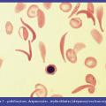 Poïkilocytose, drépanocytes, érythroblastes (drépanocytose homozygote)
